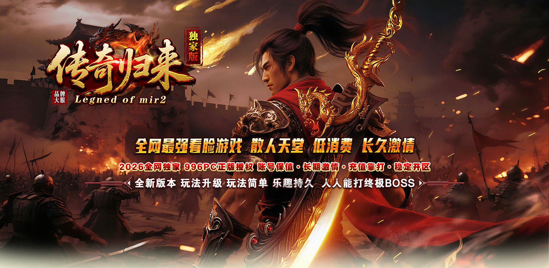 2026独家【传奇归来】,无月卡、无商行、无暗坑,纯净养老、一切靠打!